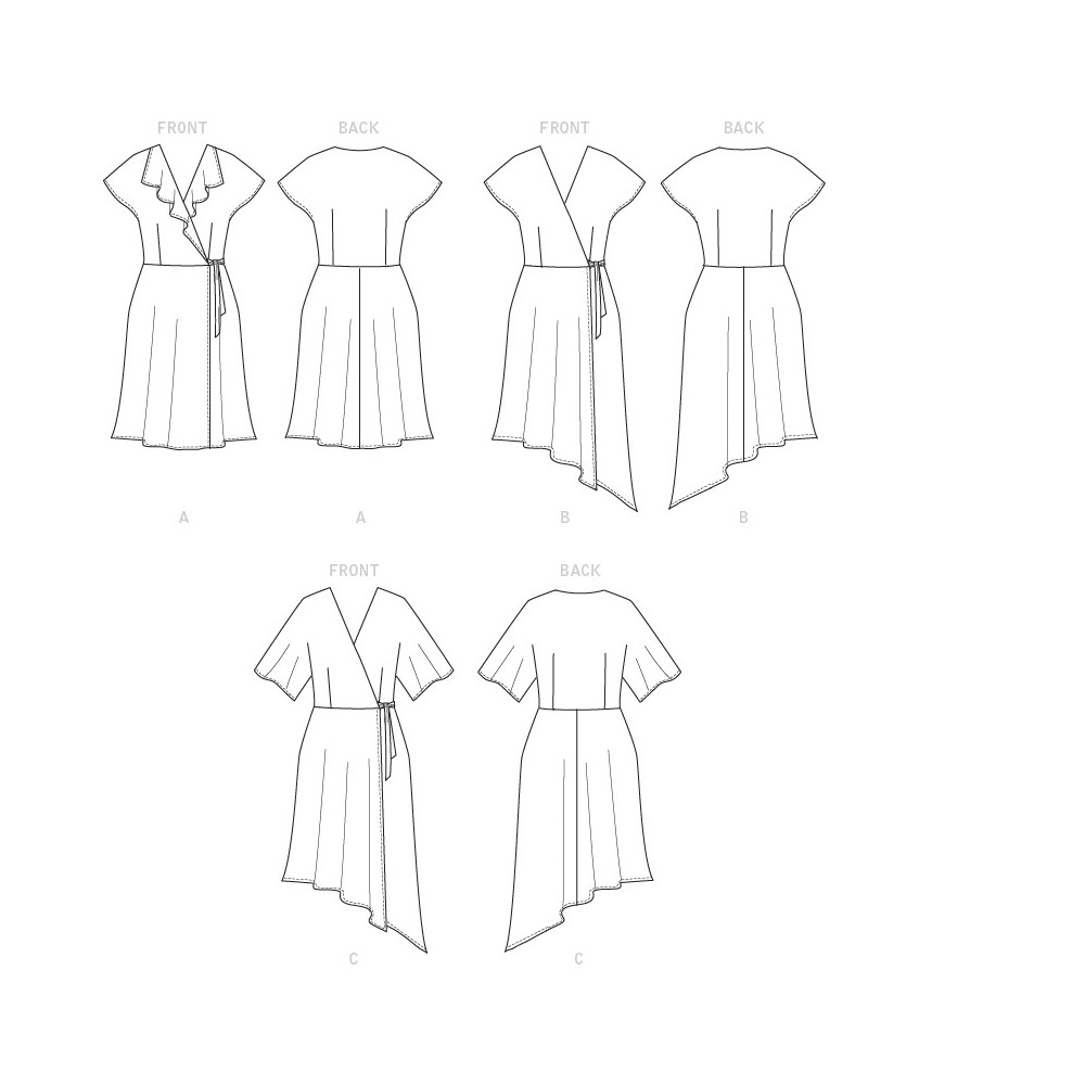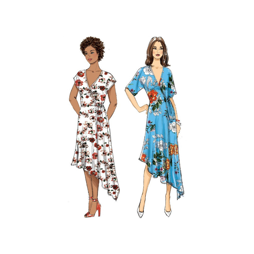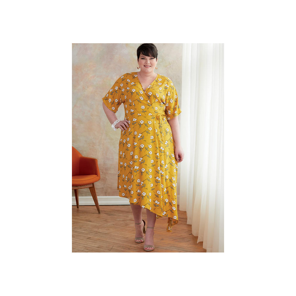 Střih Butterick na zavinovací šaty s variantami rukávů a záložkou do cípu