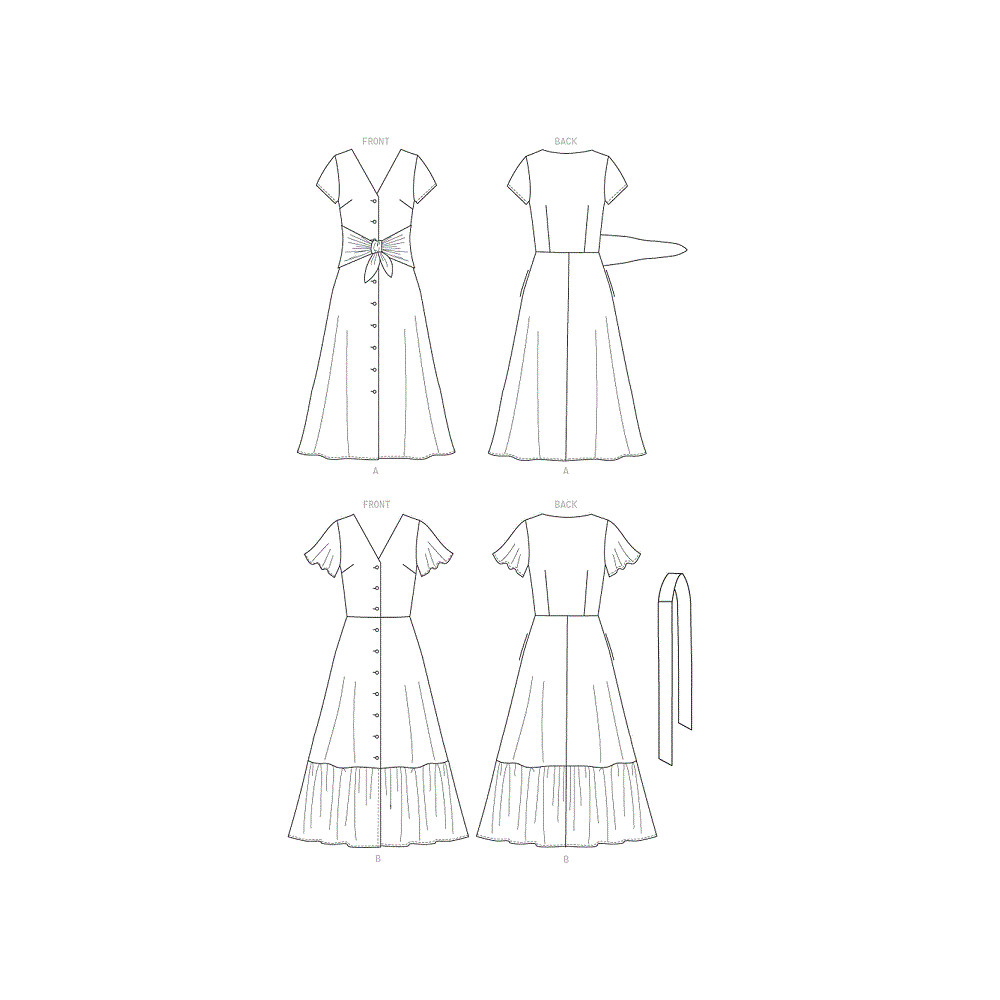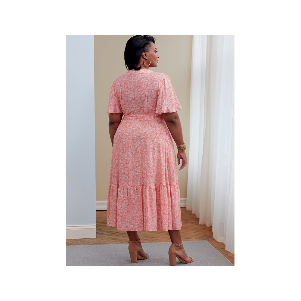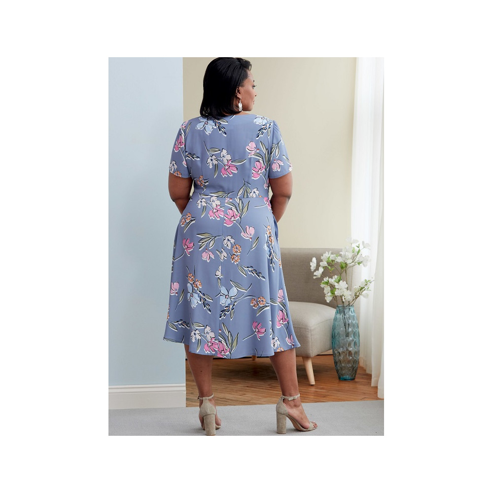 Střih Butterick na propínací šaty pro plnoštíhlé s V-výstřihem a vázáním v pase