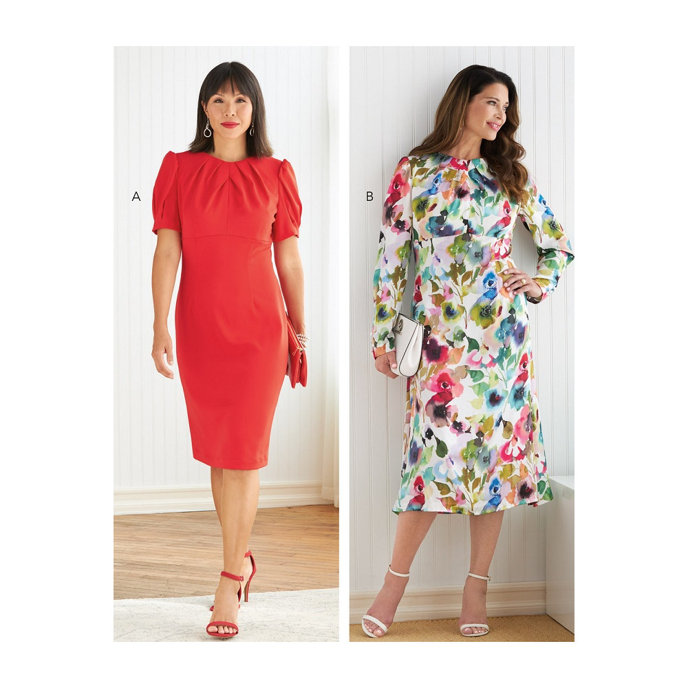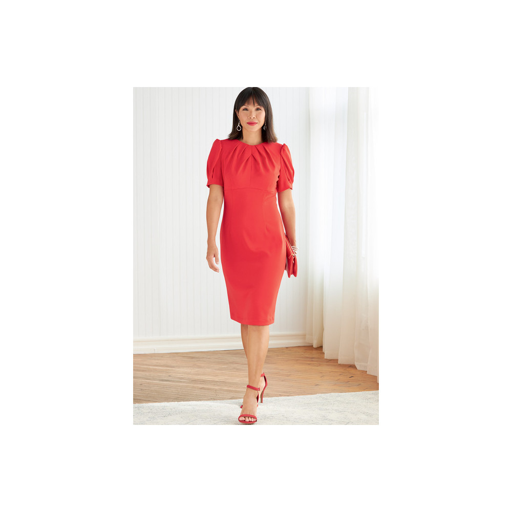 Střih Butterick na šaty se sklady v dekoltu a pouzdrovou nebo širokou sukní