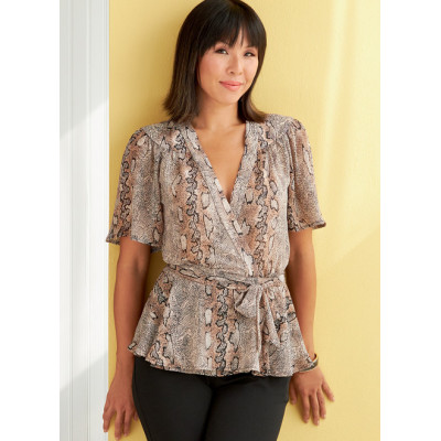 Střih Butterick na zavinovací halenku s nabíráním na sedlu a variantami rukávů