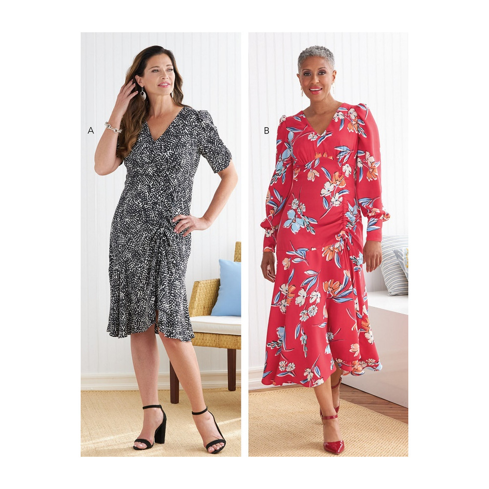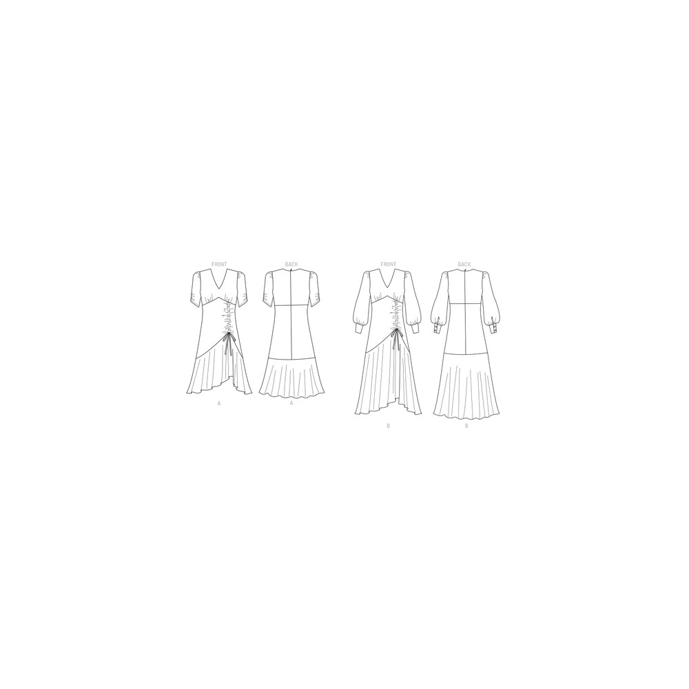 Střih Butterick na šaty ve dvou délkách se stahováním, V-výstřihem a variantami rukávů