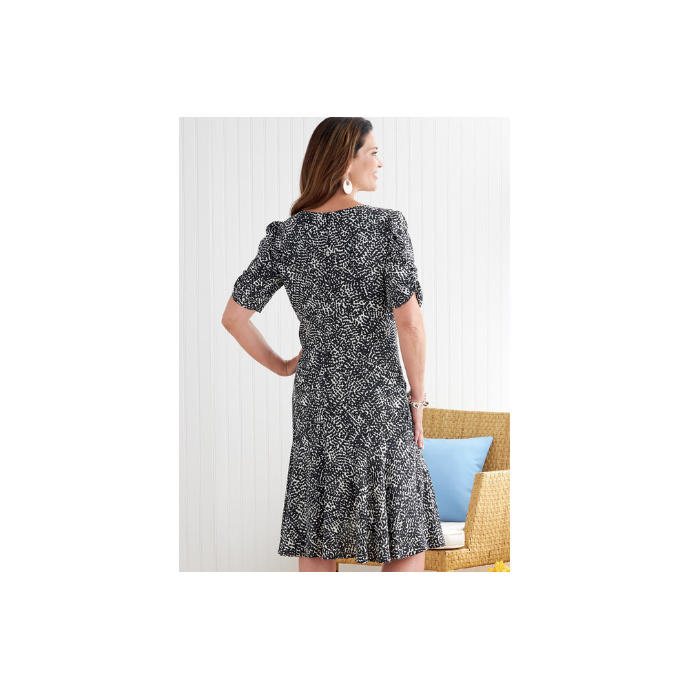 Střih Butterick na halenkové šaty s V-výstřihem, gumou v pase a variantami sukně