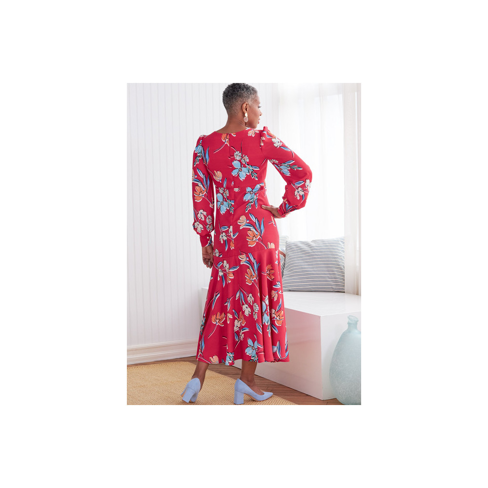 Střih Butterick na šaty s dílovými švy, variantami rukávů a širokou sukní