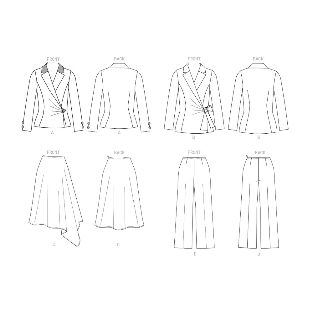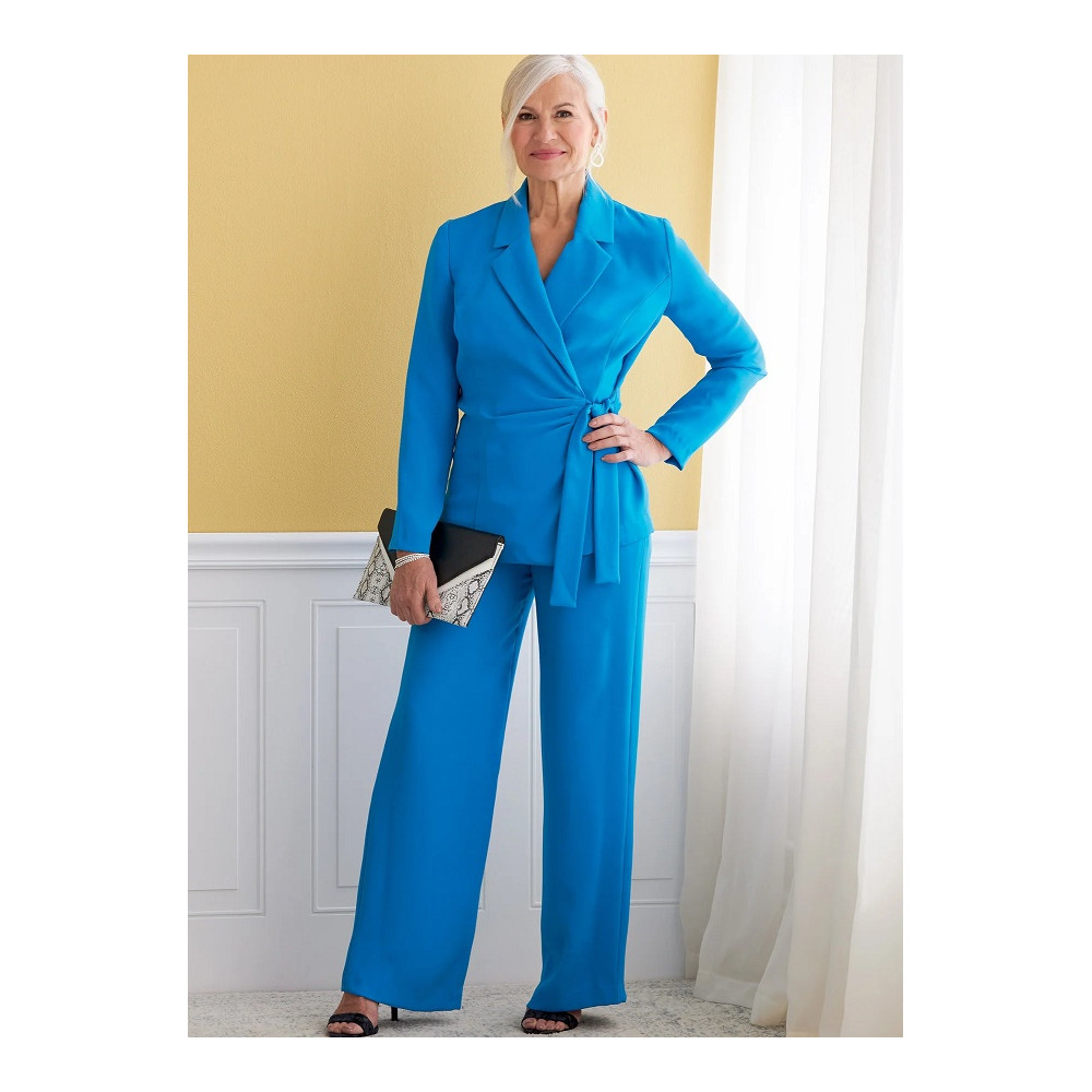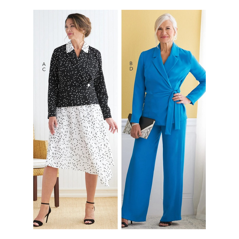 Střih Butterick na zavinovací sako, široká sukně do cípu, kalhoty s rovnými nohavicemi