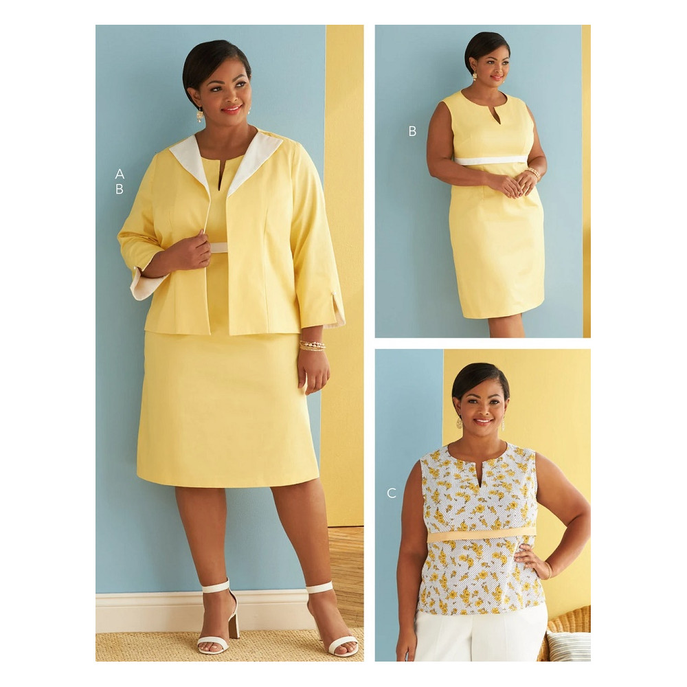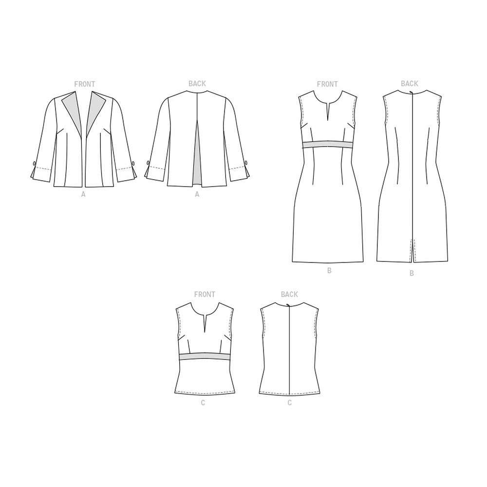 Střih Butterick na krátké sako se skladem na zádech, šaty s vysokým pasem a top