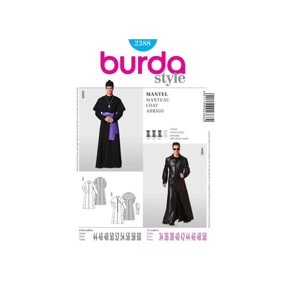 Střih Burda na karnevalový kostým na duchovního a Nea z Matrixu