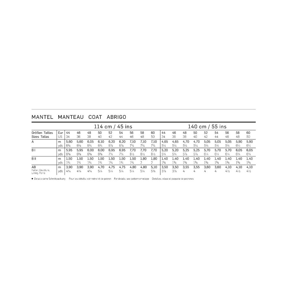 Vezměte prosím na vědomí, že střihy Burda style používají mezinárodní míry velikostí oblečení (EUR), které se mohou lišit od těch, které běžně nosíte. Pro určení správné velikosti střihu doporučujeme důkladné přeměření podle tabulky velikostí a měr Burda style. Vlastnoručně ušité oblečení by mělo nejen skvěle vypadat, ale především perfektně sedět!