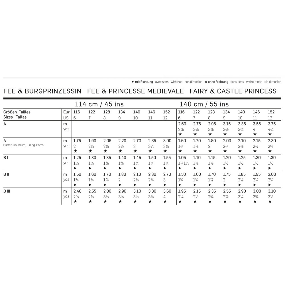 Více se dočtete v popisuStřih ve velikostech EUR 116-152, úroveň obtížnosti šití: 3 (střední), doporučené látky: transparentní látky, efektní látky, brokát, satén, samet