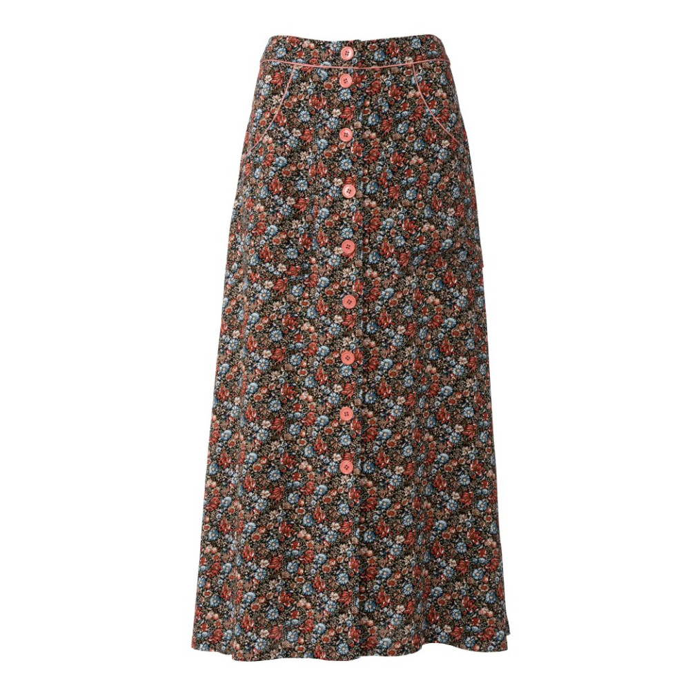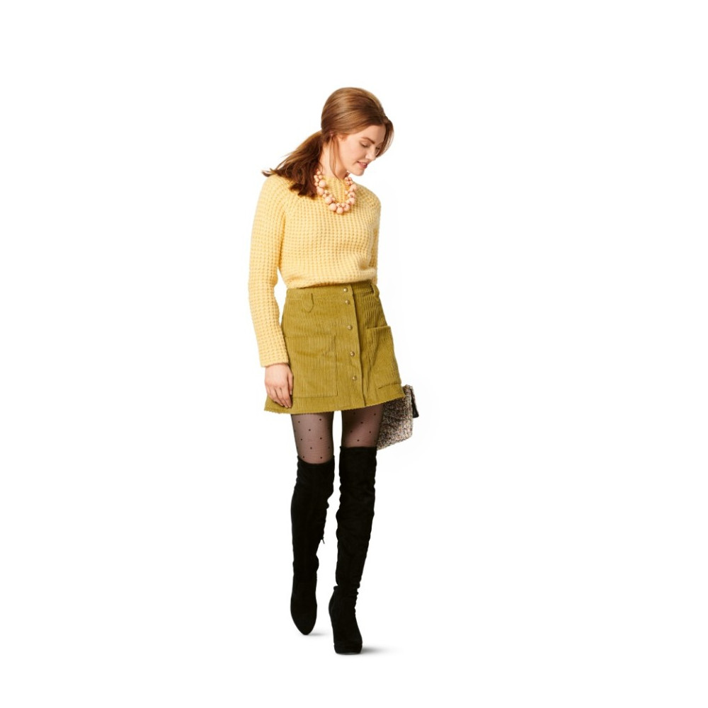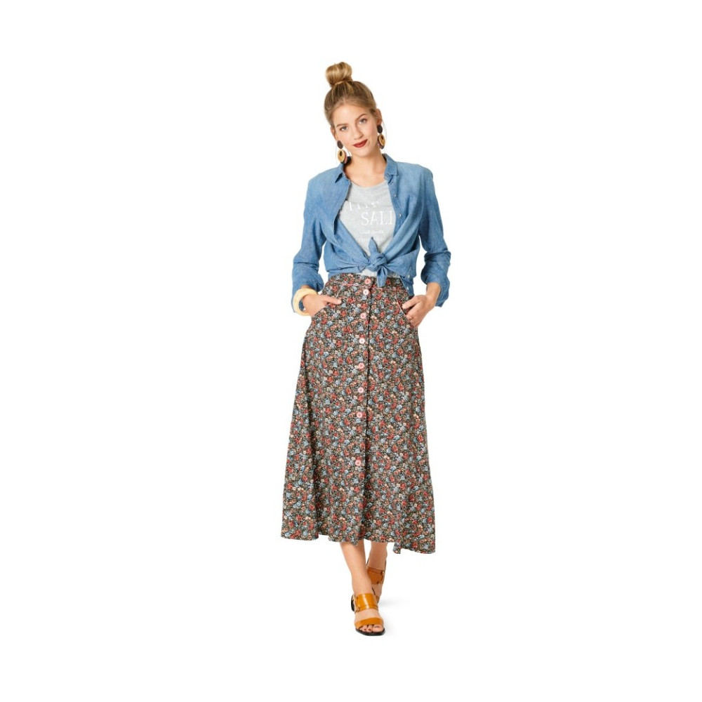 Střih Burda na kolovou sukni se sklady a kapsami v bočních švech a vázáním v pase.