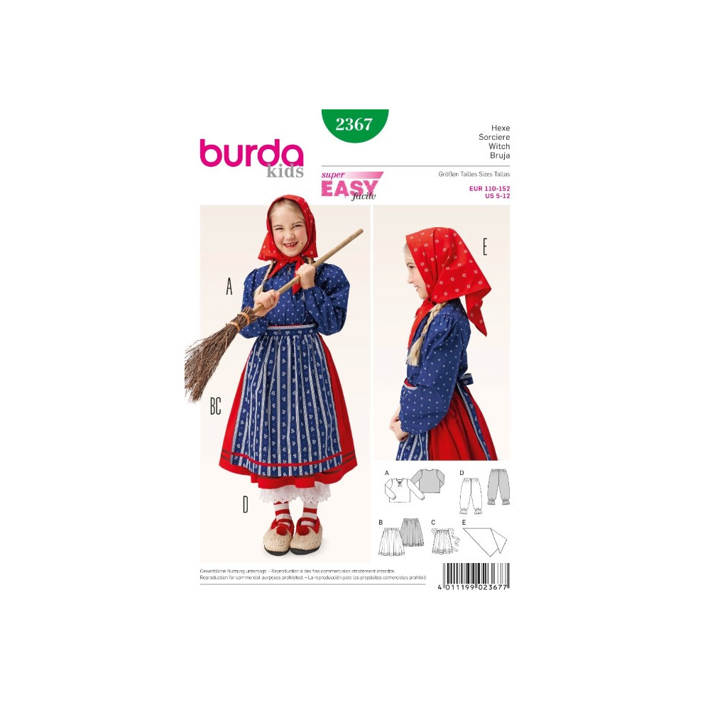 Jednoduchý střih Burda na dětský karnevalový kostým čarodějnice, ledové královny a víly