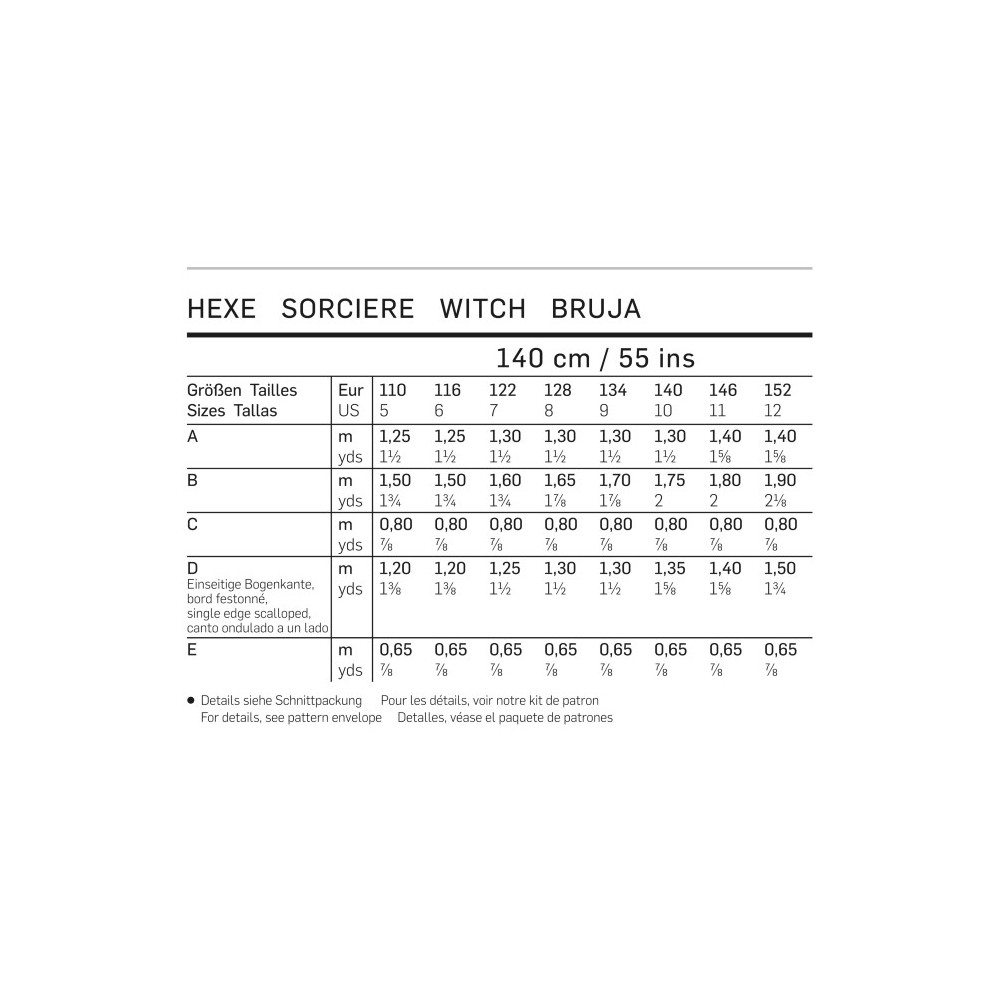 Střih ve velikostech EUR 110 - 152, úroveň obtížnosti šití: 1 (velmi lehká)