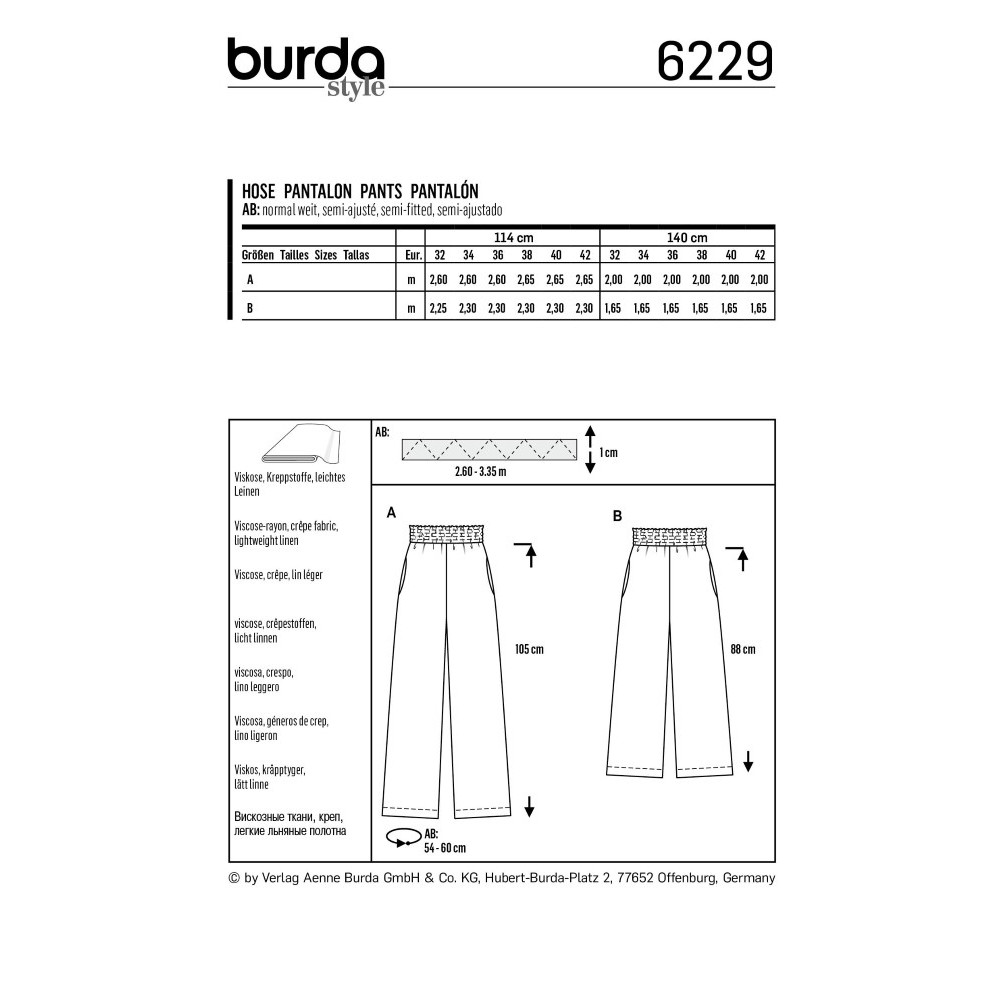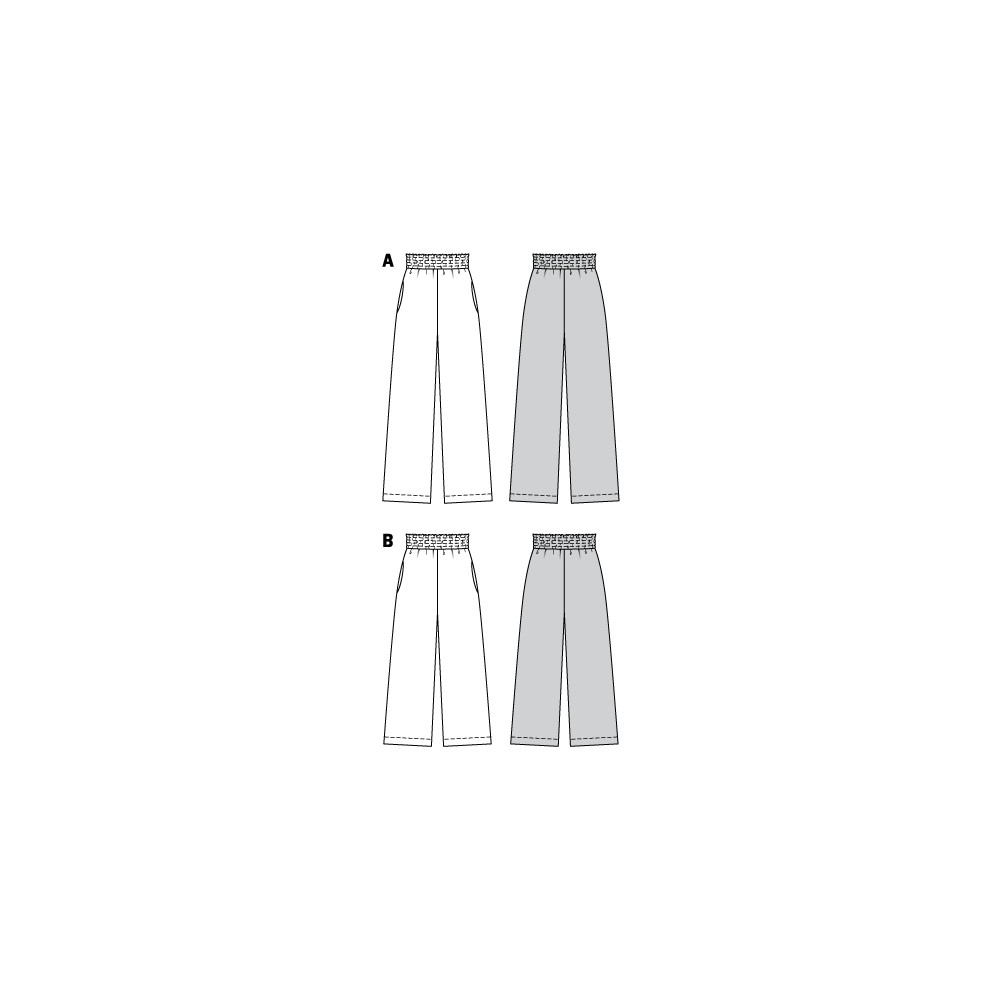 Jednoduchý střih Burda na kalhoty se širokými nohavicemi a gumou v zadním pase