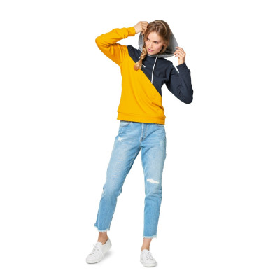 Střih Burda na mikinu s kulatým výstřihem, vysokým rolákem a kapucí.
