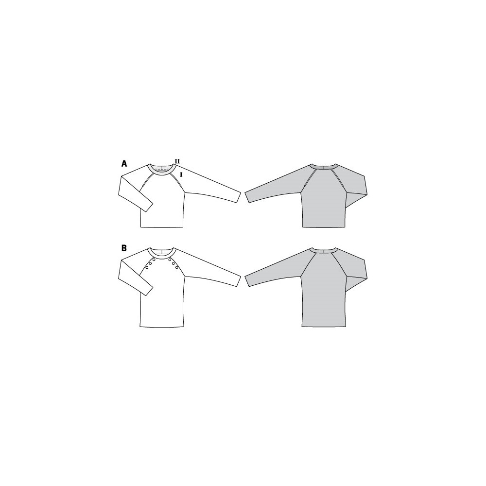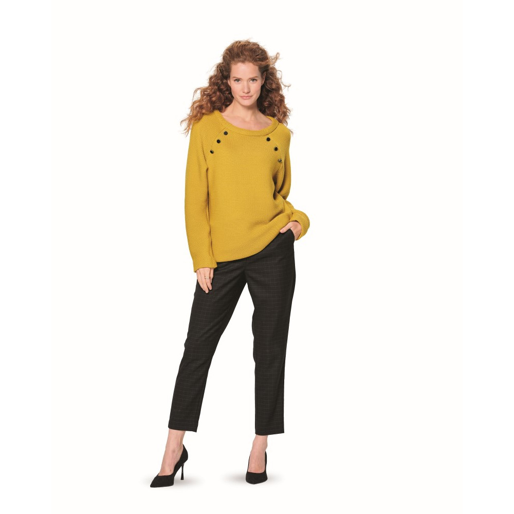 Střih ve velikostech EUR 34-44, úroveň obtížnosti šití: 1 (velmi lehká), doporučené látky: svetrovina, teplákovina, Romanitžerzej