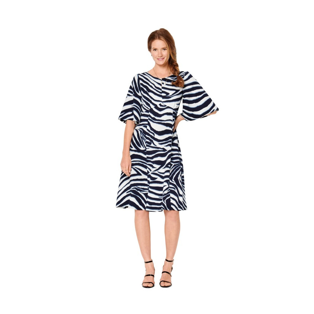 Střih ve velikostech EUR 34-44, úroveň obtížnosti šití: 2 (lehká), doporučené látky: viskóza, krepové látky, směsové látky, len