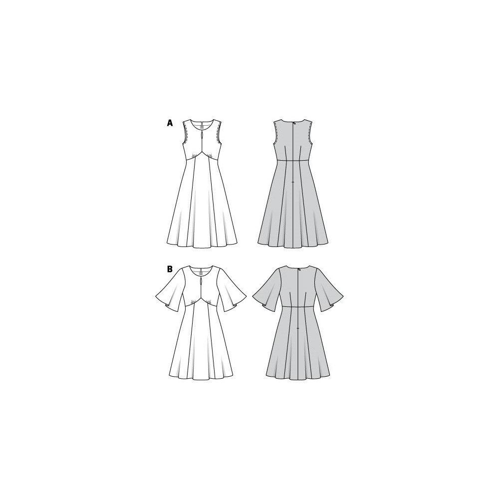Střih Burda na šaty bez rukávů s rozšířenou sukní se sklady a pouzdrové krajkové šaty
