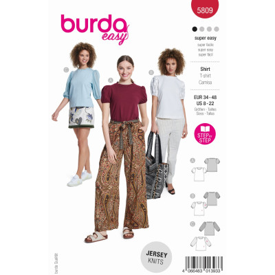 Jednoduchý střih Burda na tričko s kulatým výstřihem a balonovými rukávy