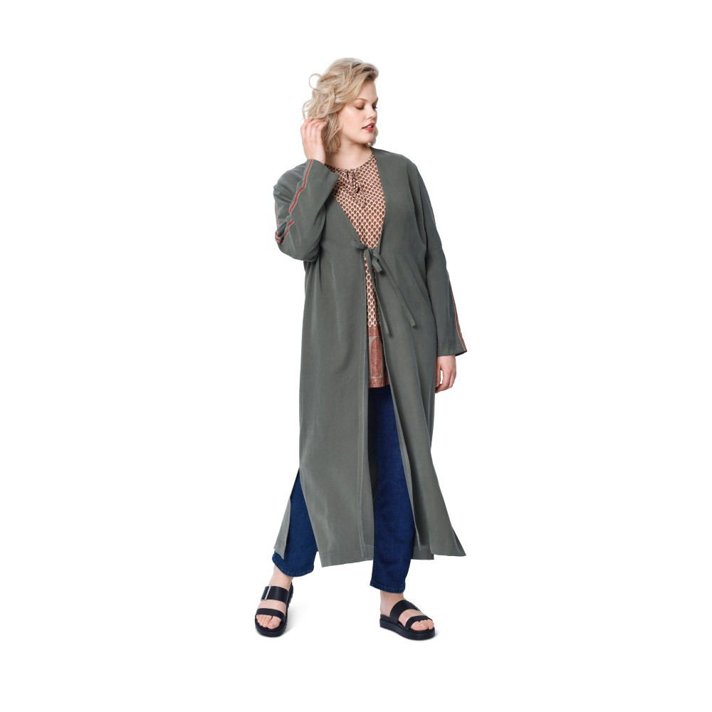 Střih ve velikostech EUR 44-54, úroveň obtížnosti šití: 1 (velmi lehká), doporučené látky: lehčí bavlna, viskóza, krepové látky, hedvábí