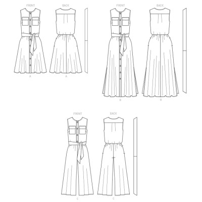 Střih Butterick na propínací šaty a overal bez rukávů s páskem a náprsními kapsami Nejnižší...