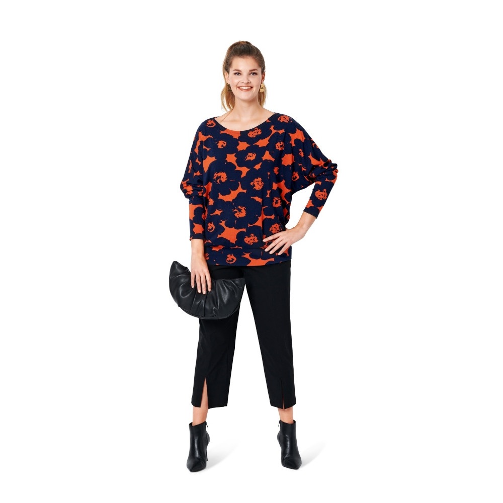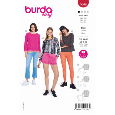 Jednoduchý střih Burda na ležérní halenku s kulatým výstřihem a nápletovými lemy