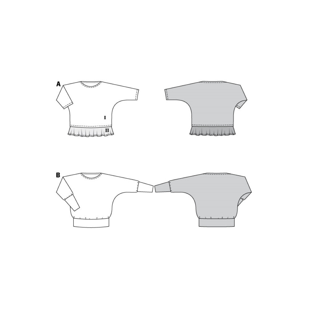 Střih Burda na jednoduché tričko ve dvou délkách se sesazenými rukávy.