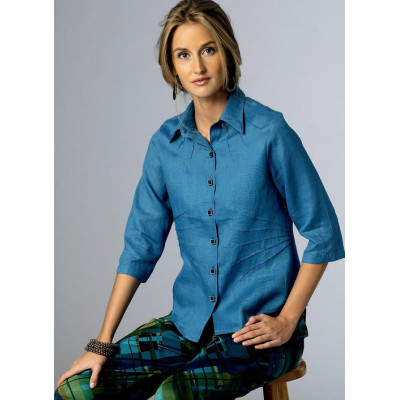 Střih Butterick na košili s rukávy nebo bez rukávů s ozdobnými paprsčitými sklady