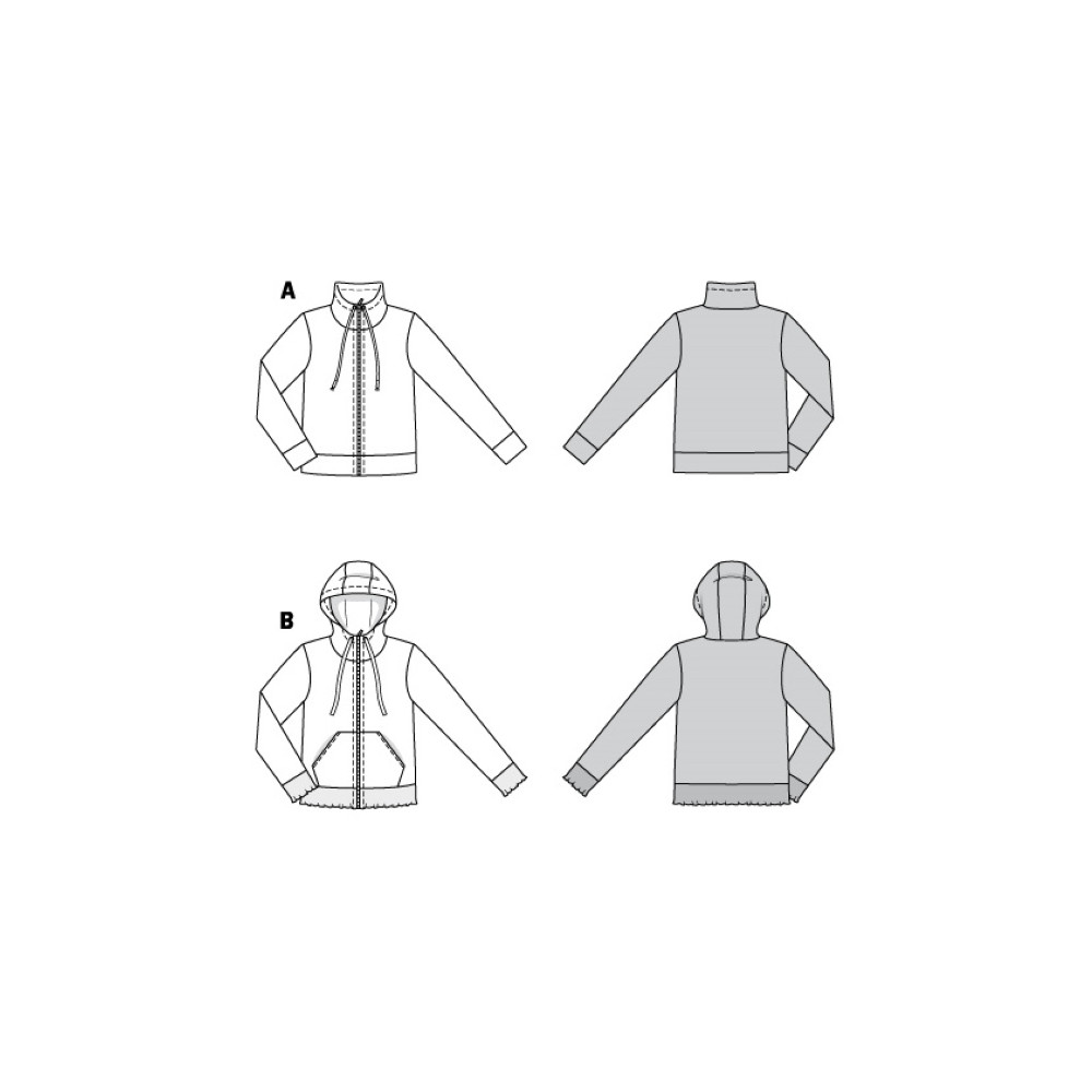Střih Burda na mikinu s kapucí a předními kapsami a mikinu bez kapuce