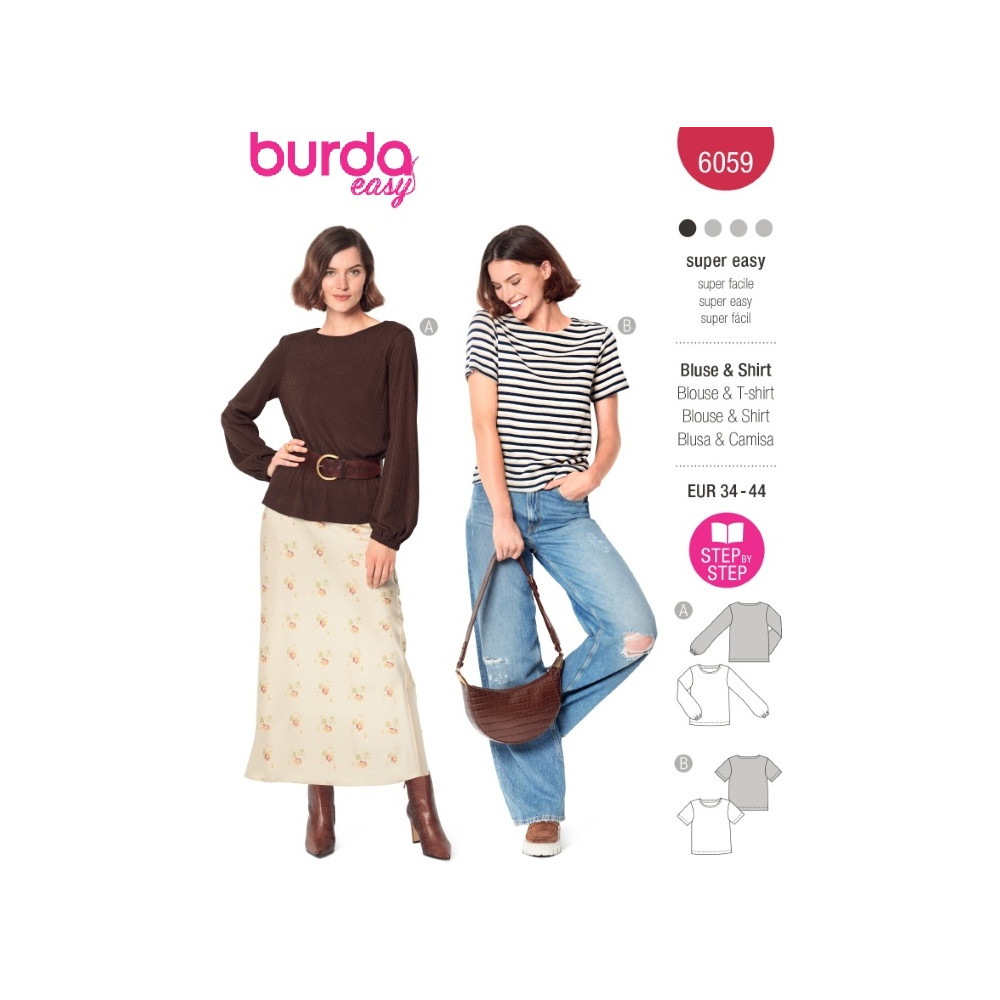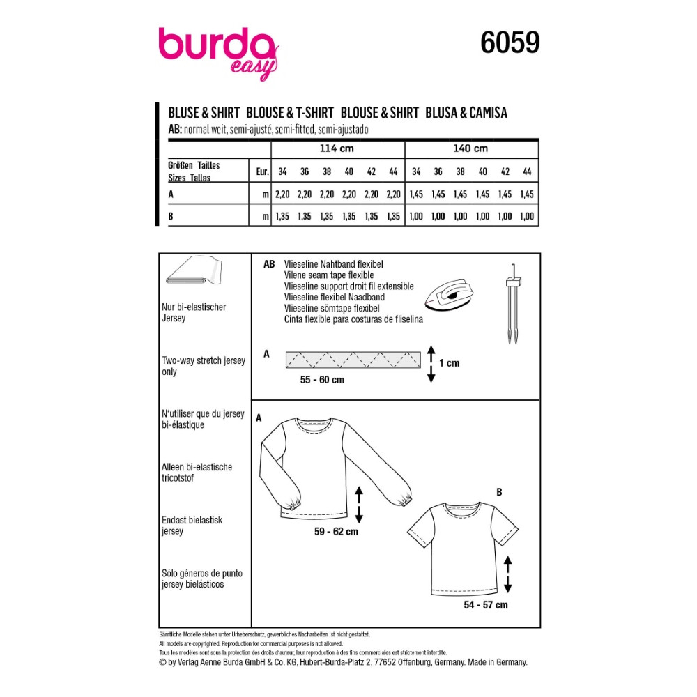 Jednoduchý střih Burda na tričko s kulatým výstřihem: 3 délky a 3 varianty rukávů