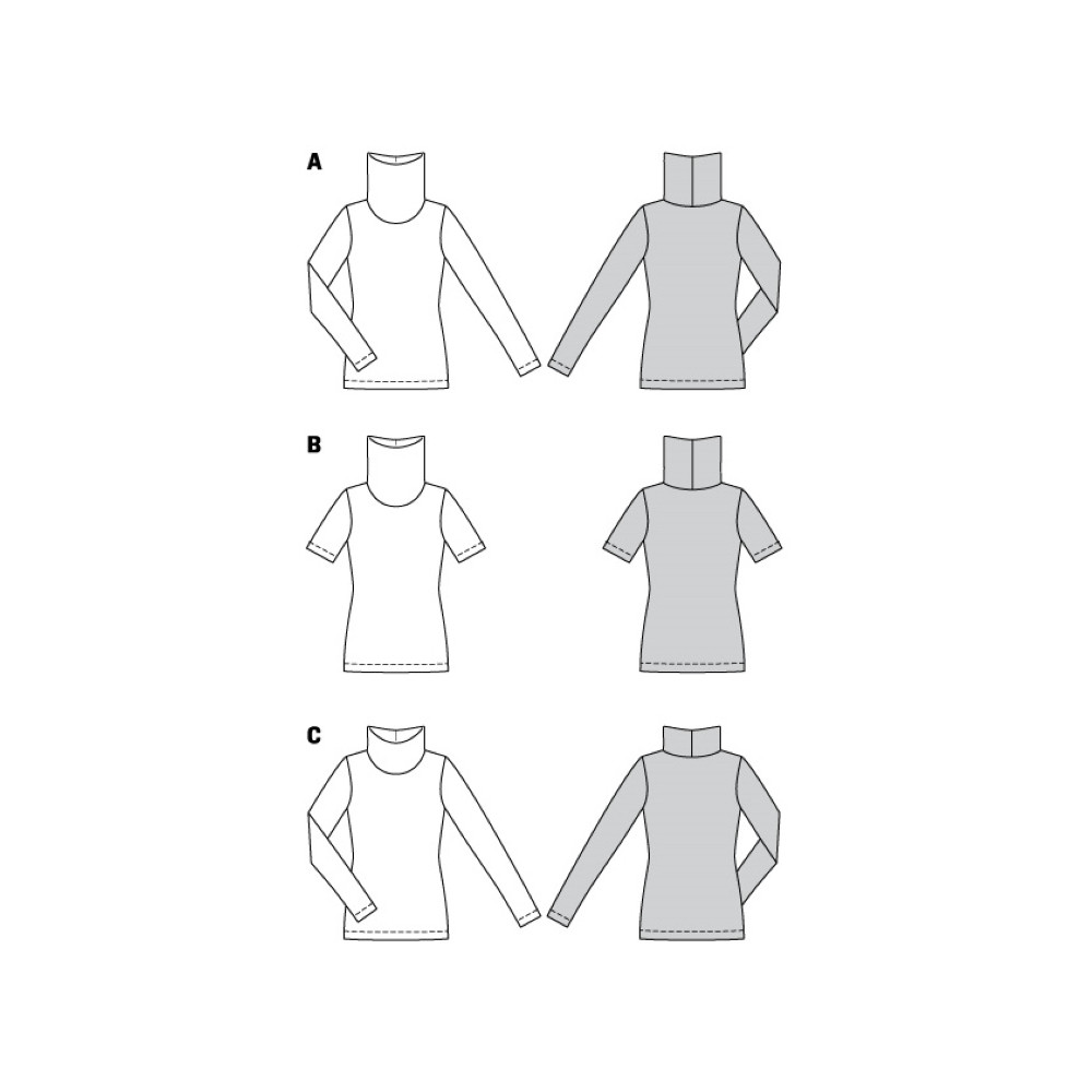 Střih Burda na jednoduché žerzejové tričko s kulatým výstřihem v různých délkách.