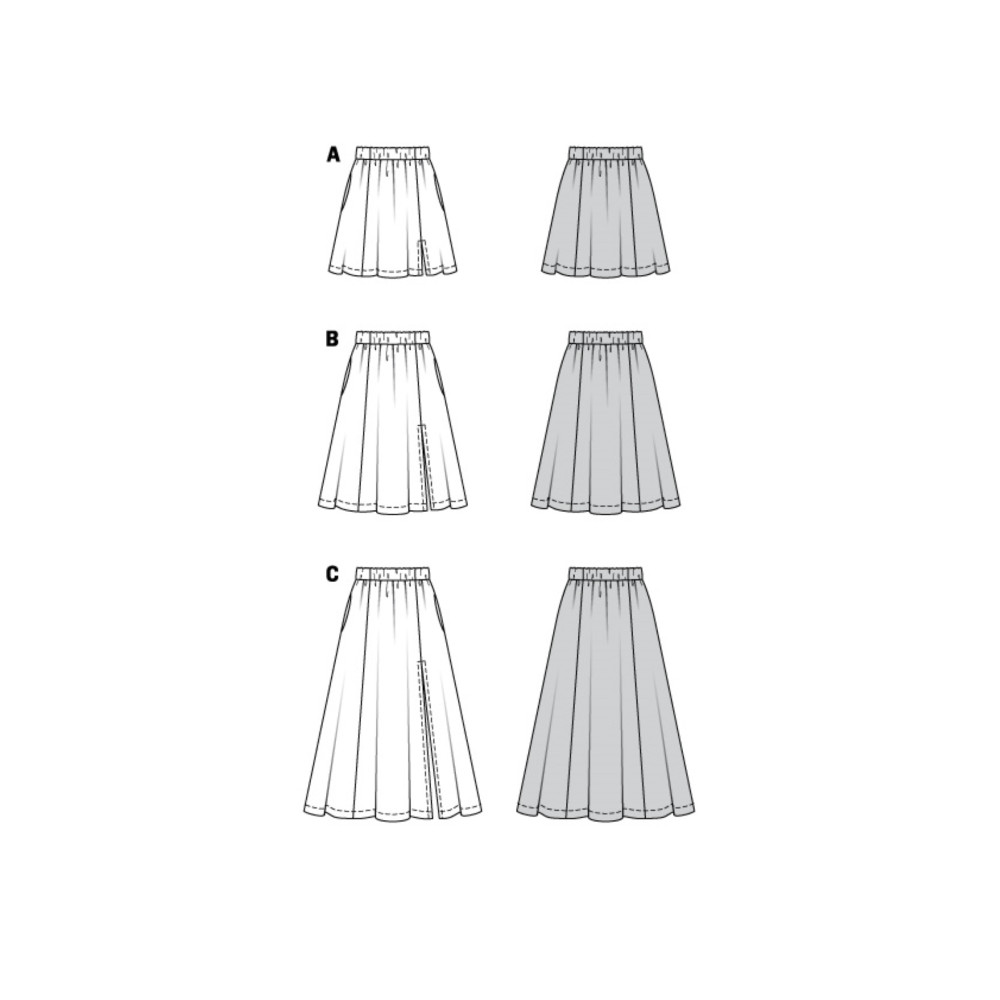 Jednoduchý střih Burda na áčkovou sukni ve třech délkách s kapsami a pasem do gumy