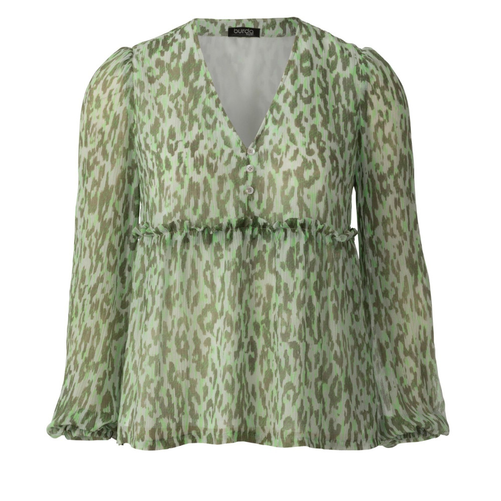 Jednoduchý střih Burda na halenku s lodičkovým výstřihem, projmutým pasem a nabíraným volánovým...