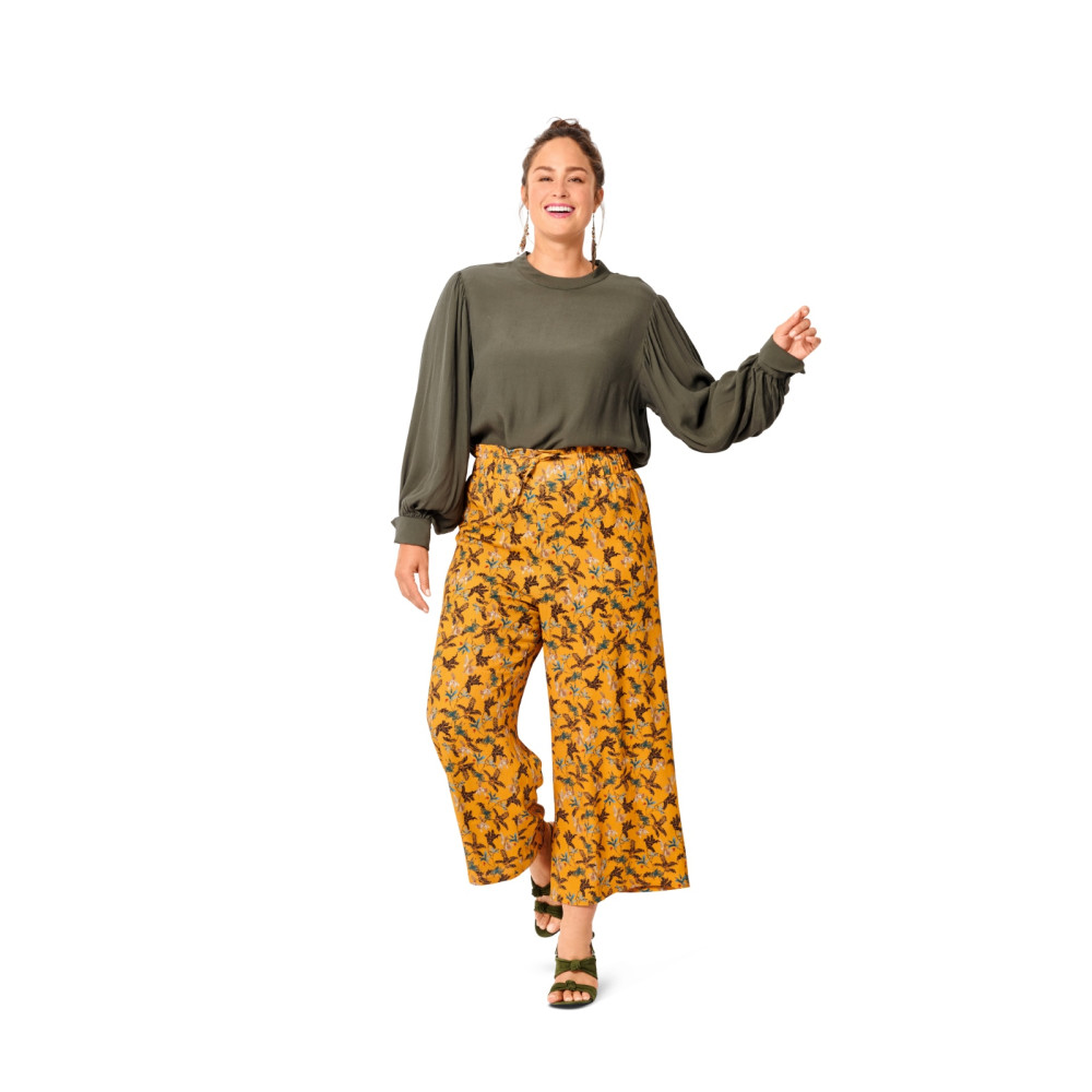 Střih ve velikostech EUR 44-54, úroveň obtížnosti šití: 2 lehká info, doporučené látky: bavlna, viskóza, len, směsové látky