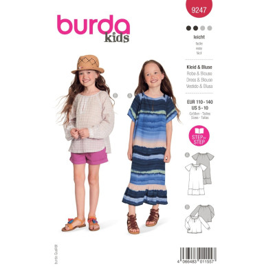 Střih Burda na delší volné šaty a halenku s průstřihem a raglánovými rukávy