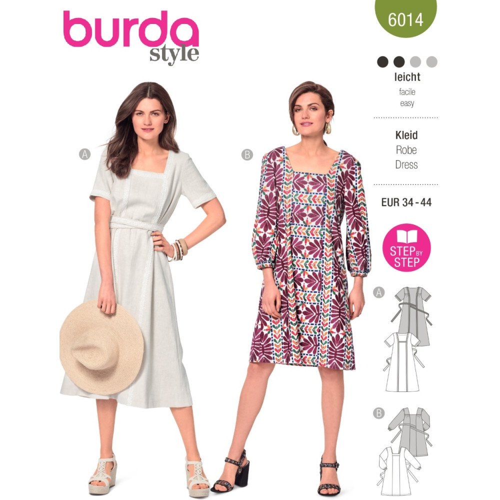 Střih ve velikostech EUR 34-44, úroveň obtížnosti šití: 2 lehká info, doporučené látky: bavlna, směsové látky, viskóza, len