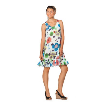 Střih Burda na jednoduché volné tílkové šaty v různých délkách a tílko s kulatým výstřihem.