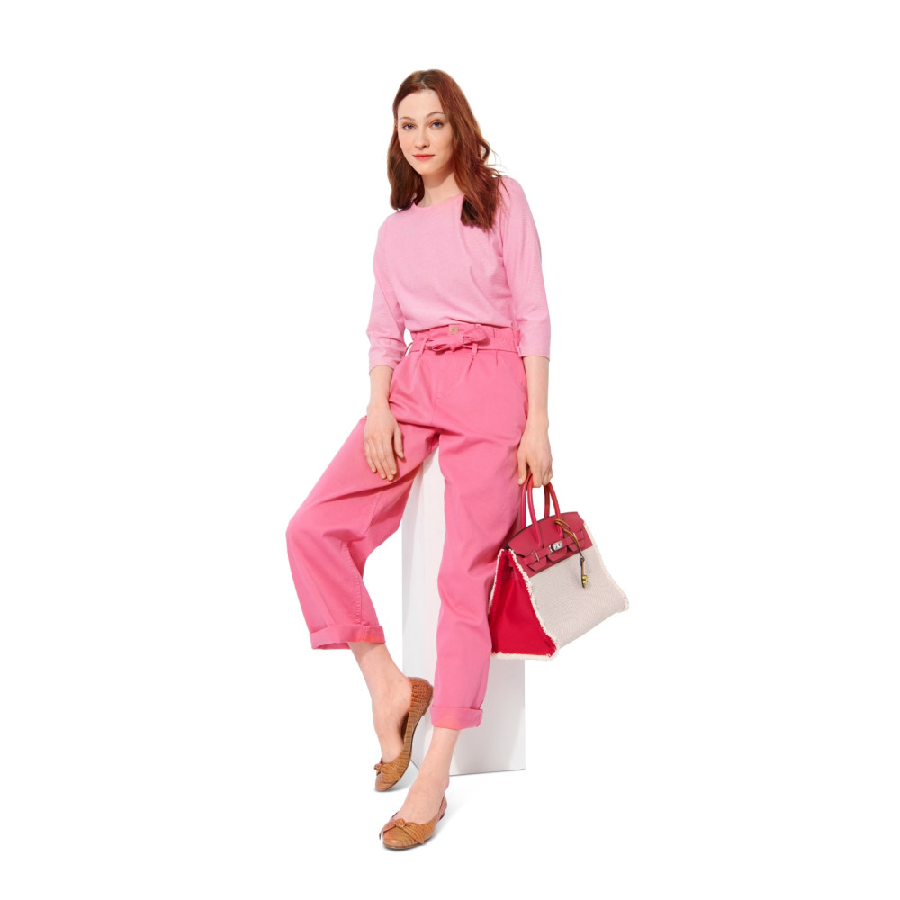 Střih Burda na jednoduché cigaretové kalhoty s puky a zvonové kalhoty s pasem do gumy.
