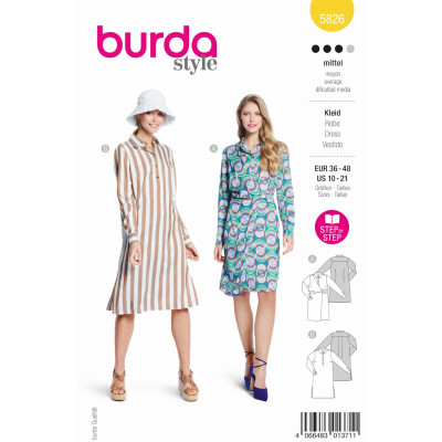 Střih Burda na rovné košilové šaty s bočními rozparky a se zavinovacím efektem