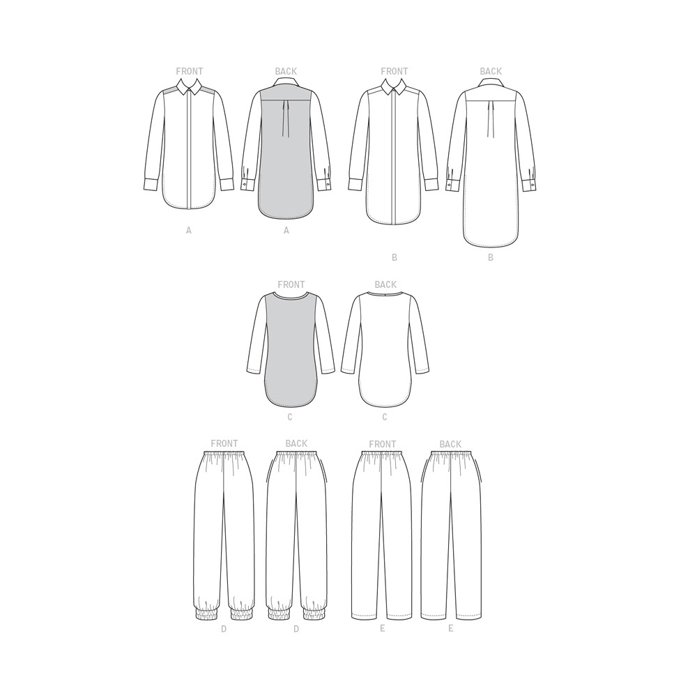 Střih Butterick na tuniku s princess švy a delším zadním dílem (4 varianty)