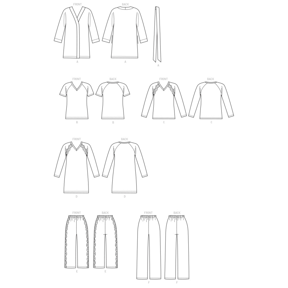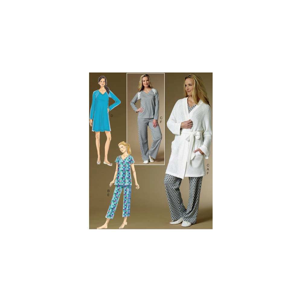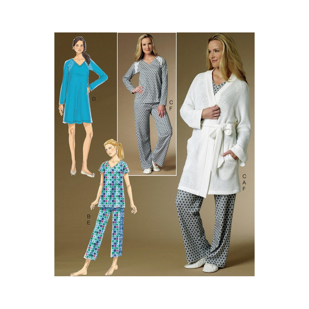 Střih Butterick na pyžamo - noční košile, tričko, kalhoty s gumou v pase, župan