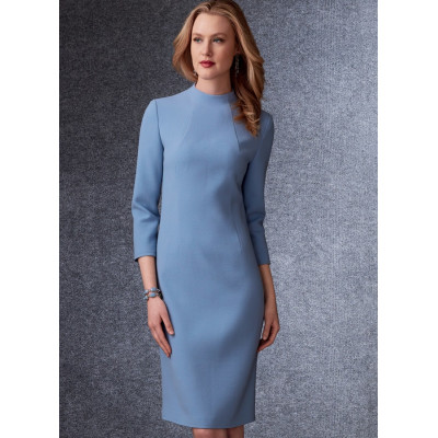 Střih Vogue na úzké šaty ke kolenům se stojáčkem a tvarujícími záševky a krátké sako se širokým...