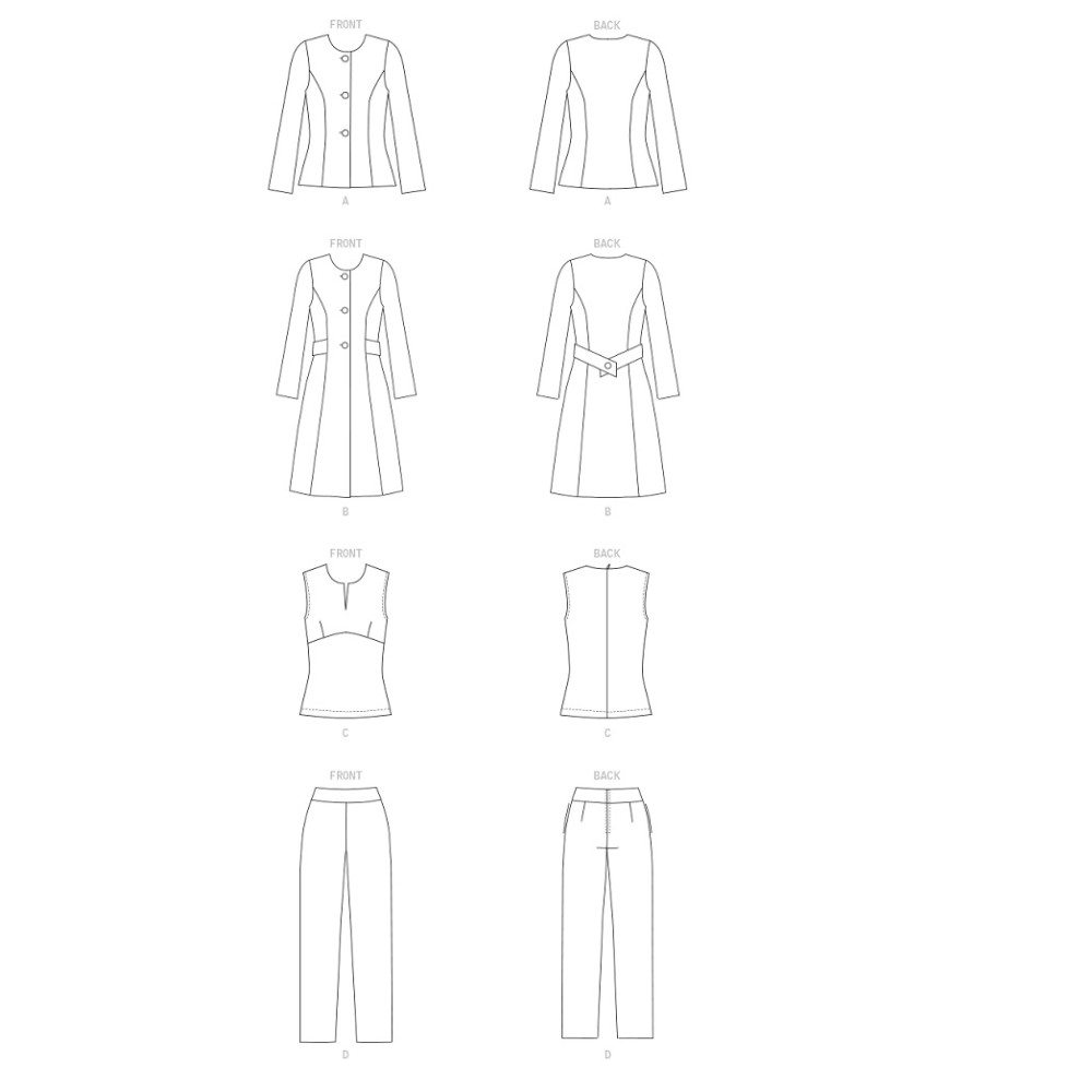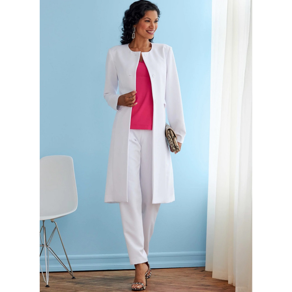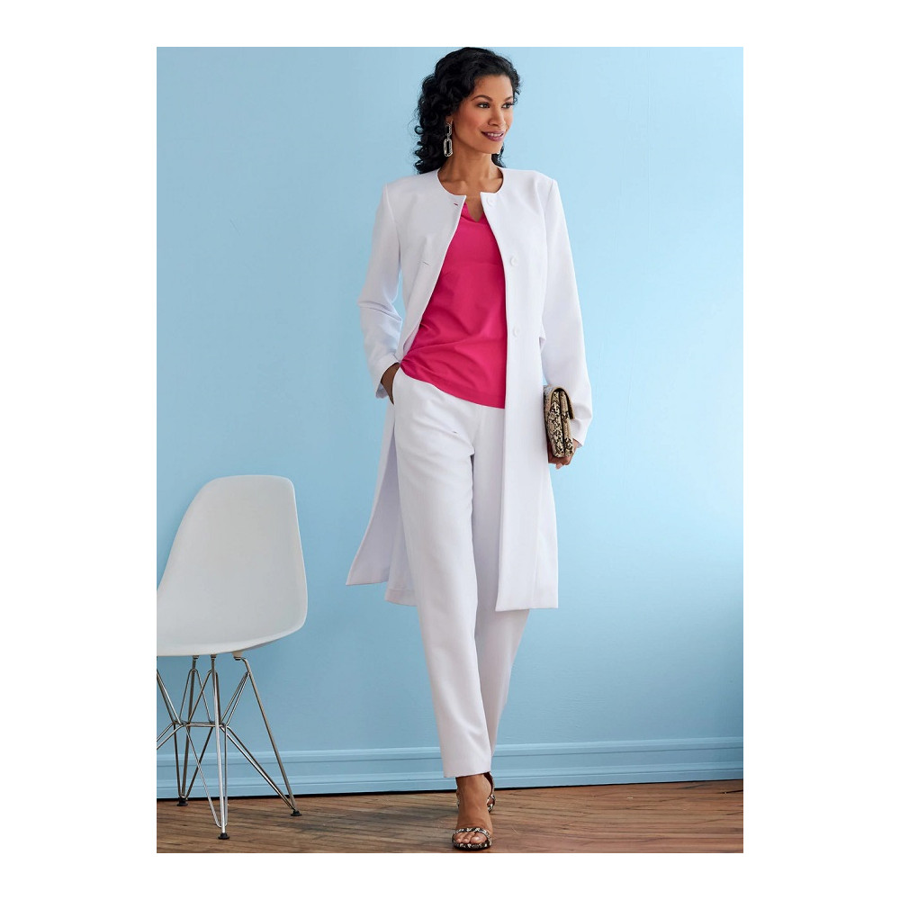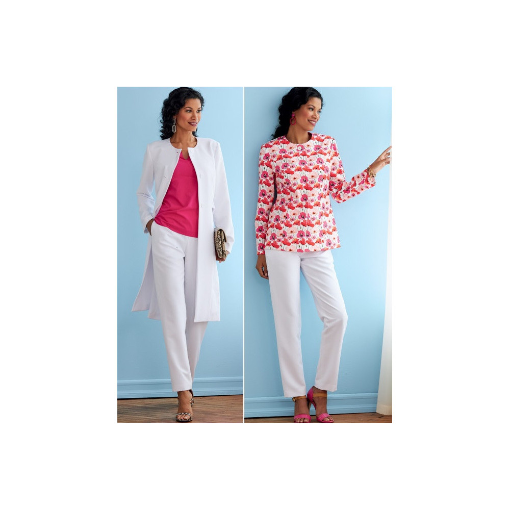 Střih Butterick na sako a kabát bez límce, top s empírovým pasem a kalhoty