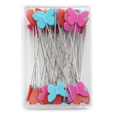 5 cm dlouhé špendlíky s ozdobnou plastovou hlavičkou ve tvaru motýlků a srdíček