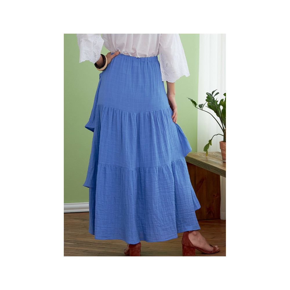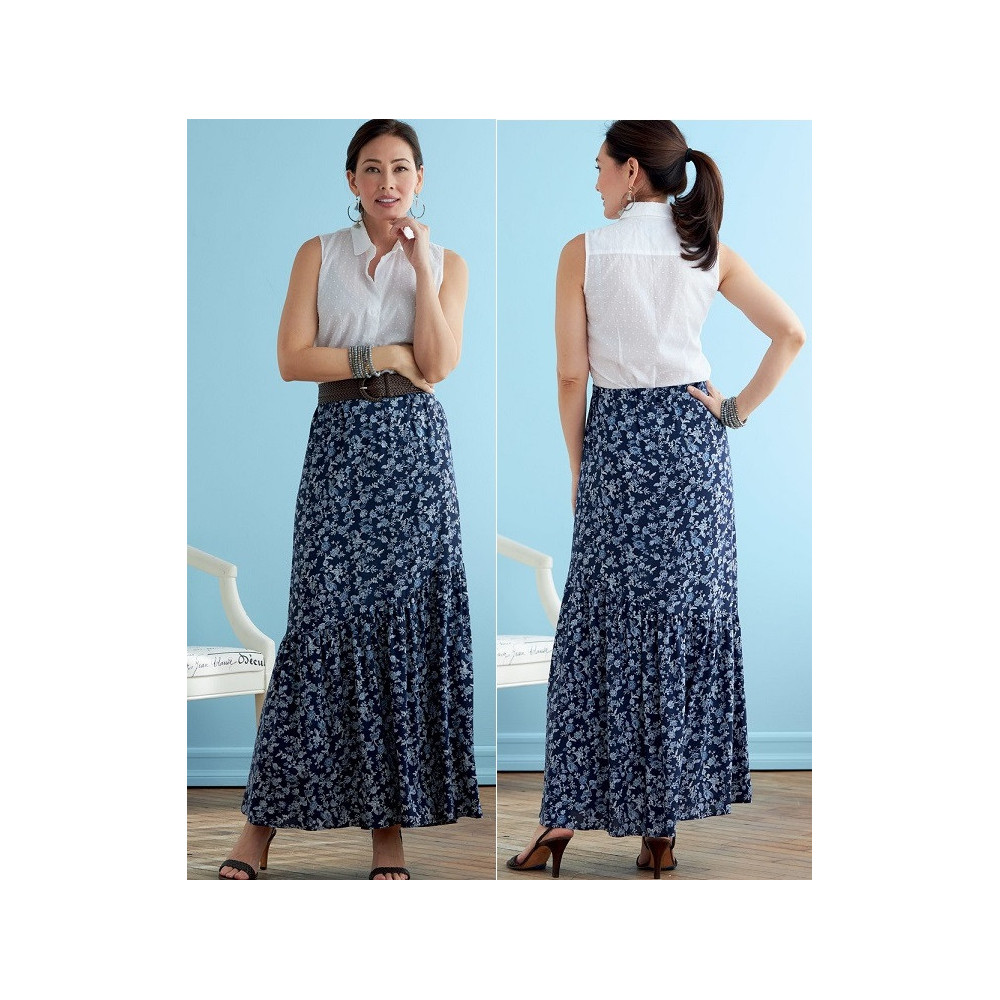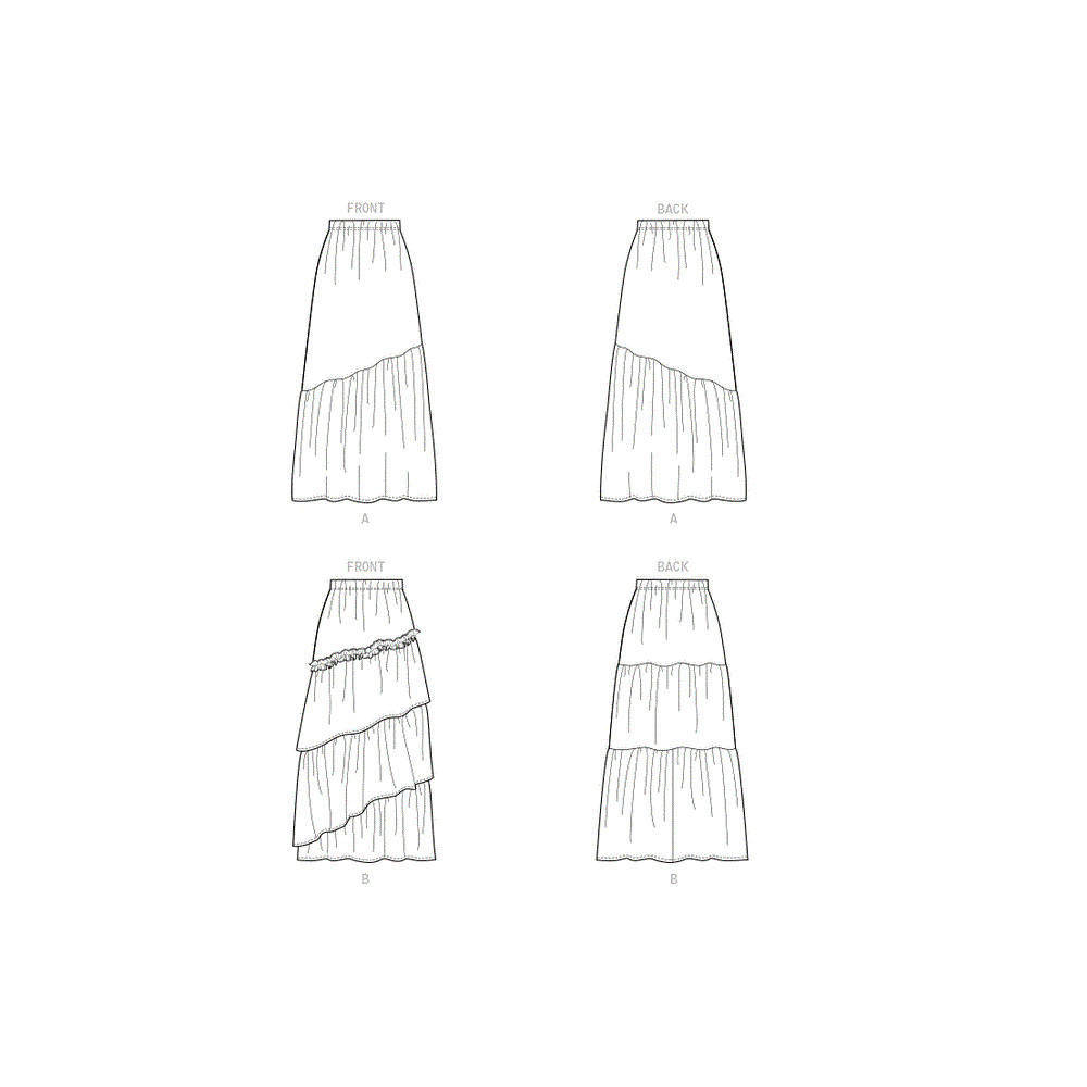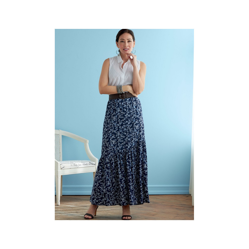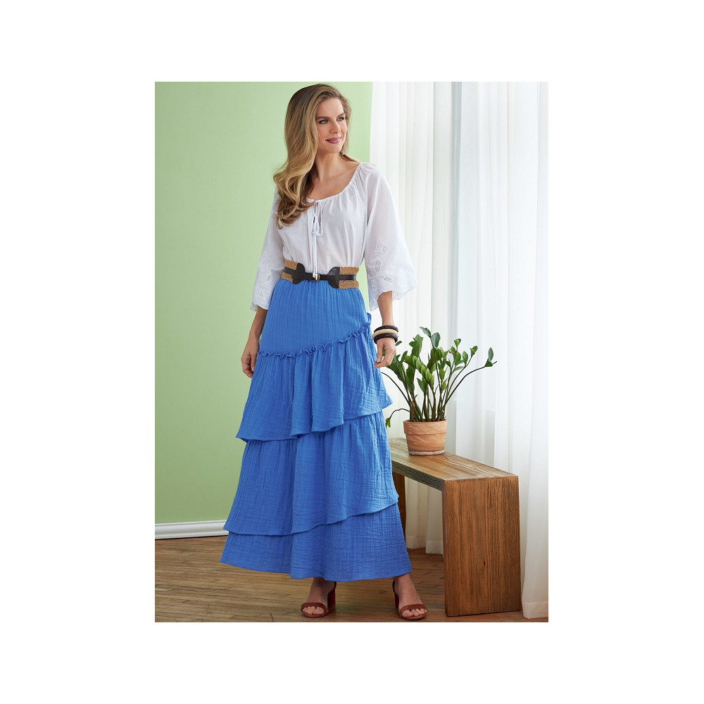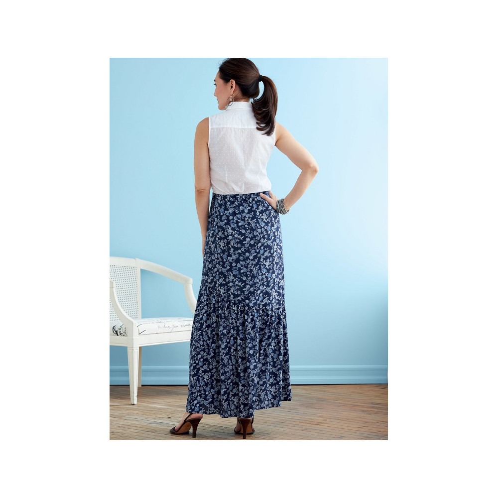 Střih Butterick na dlouhou nabíranou sukni s gumou v pase a volány