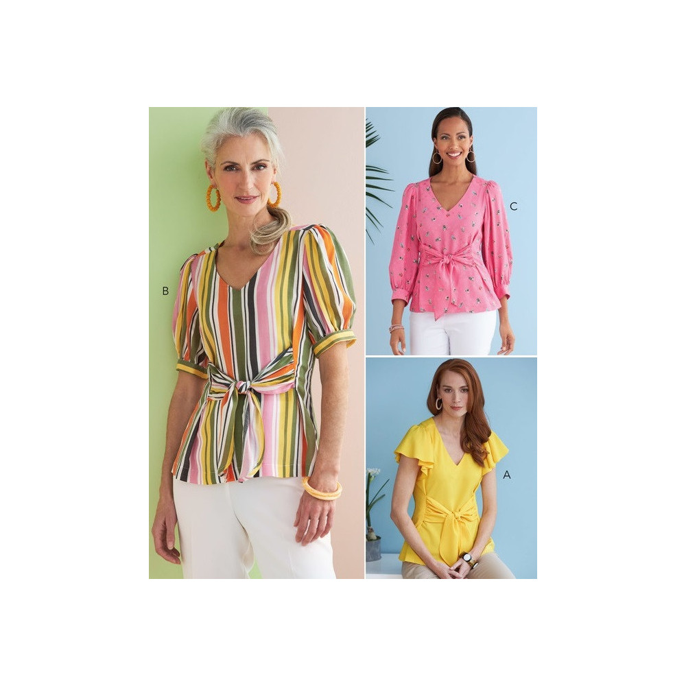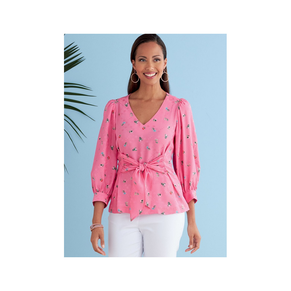 Střih Butterick na halenku s V-výstřihem a se zavazováním v pase vpředu