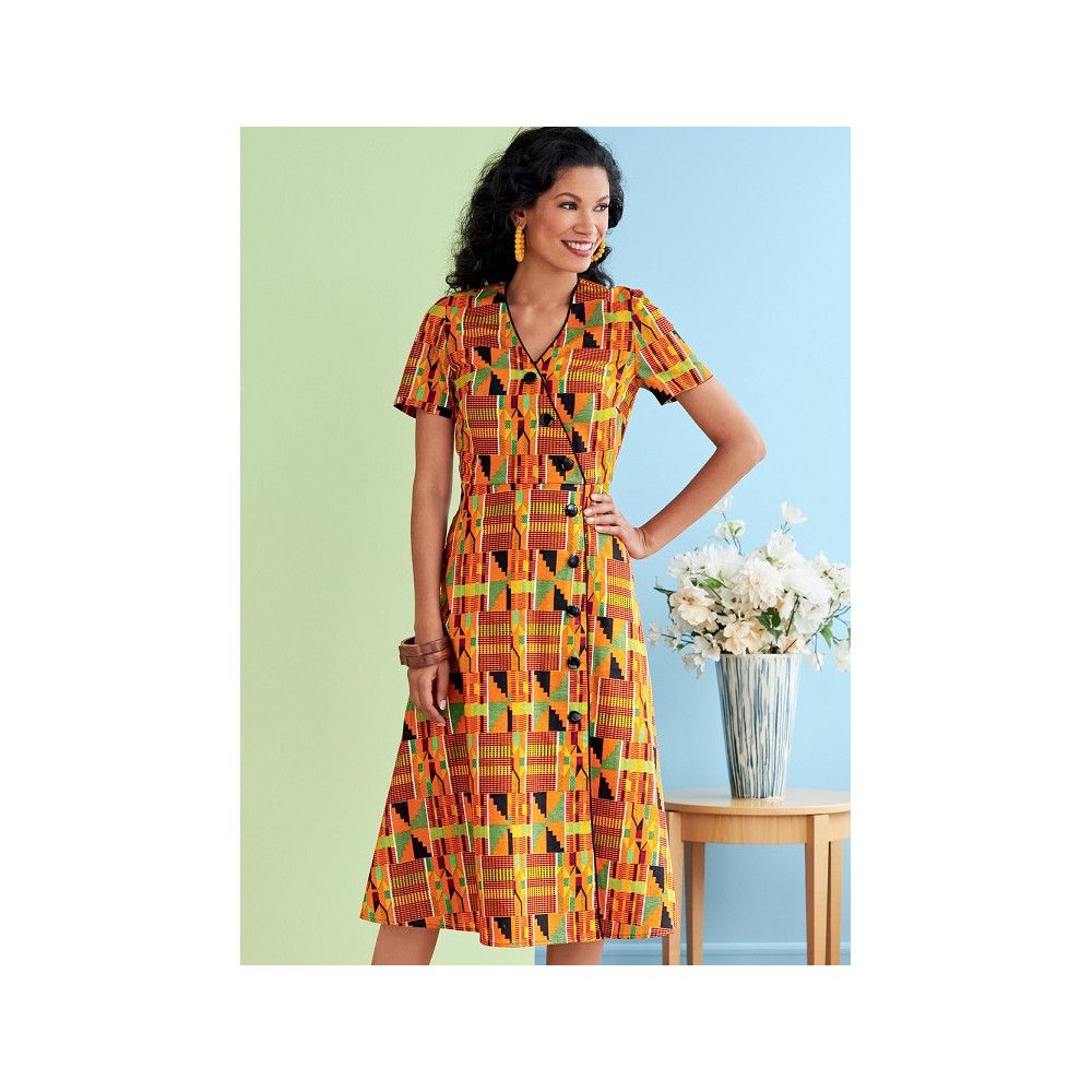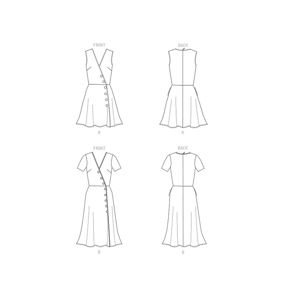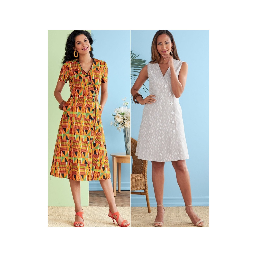 Střih Butterick na šaty se zavinovacím efektem, knoflíky a variantami rukávů