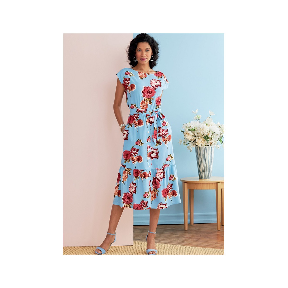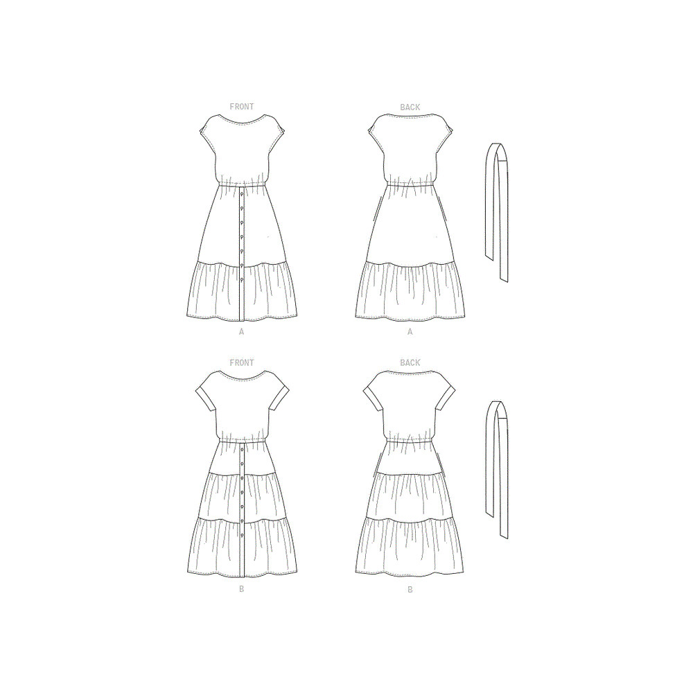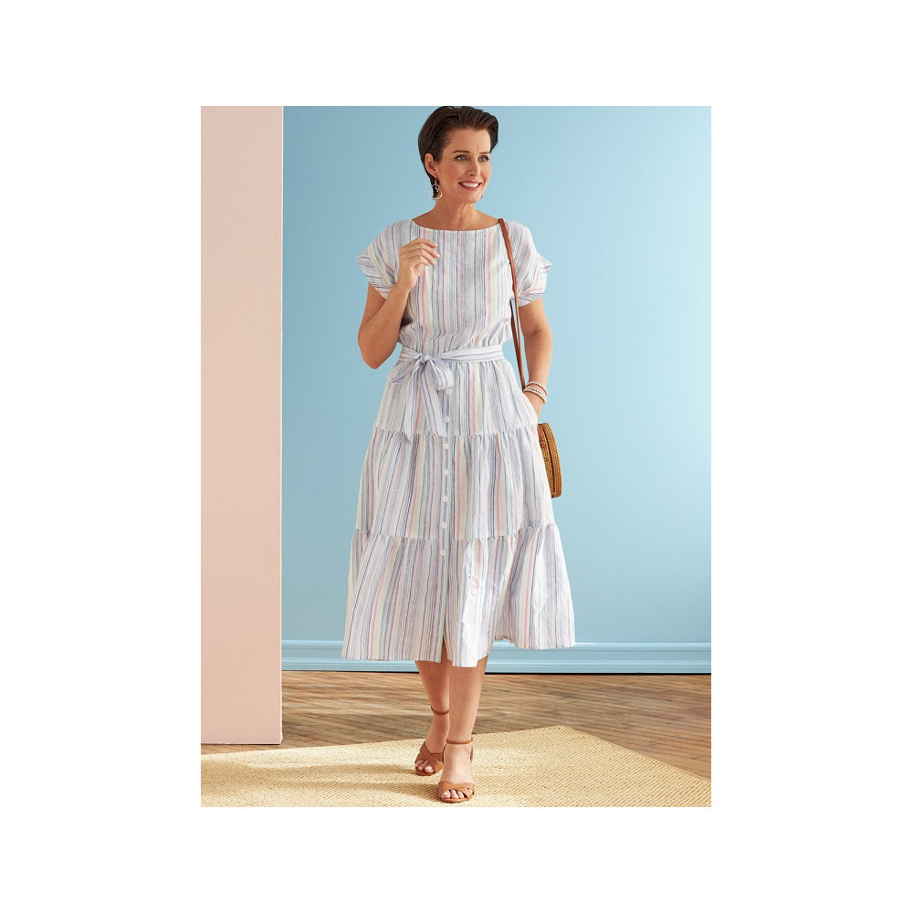 Střih Butterick na šaty s gumou v pase, páskem a s propínací nabíranou sukní