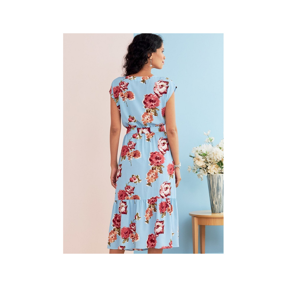Střih Butterick na šaty s V-výstřihem, kontrastní vsadkou, převráceným skladem a kapsami