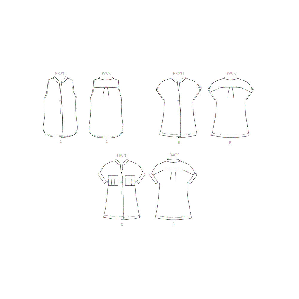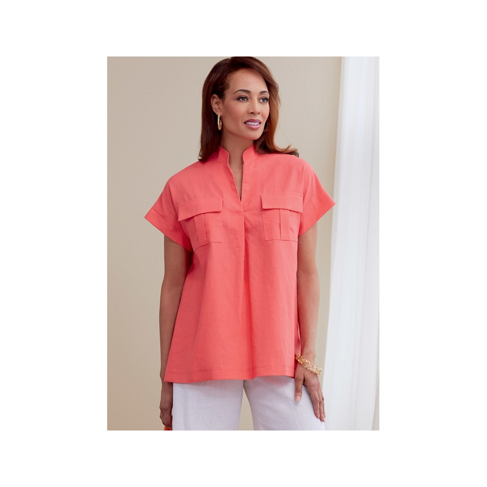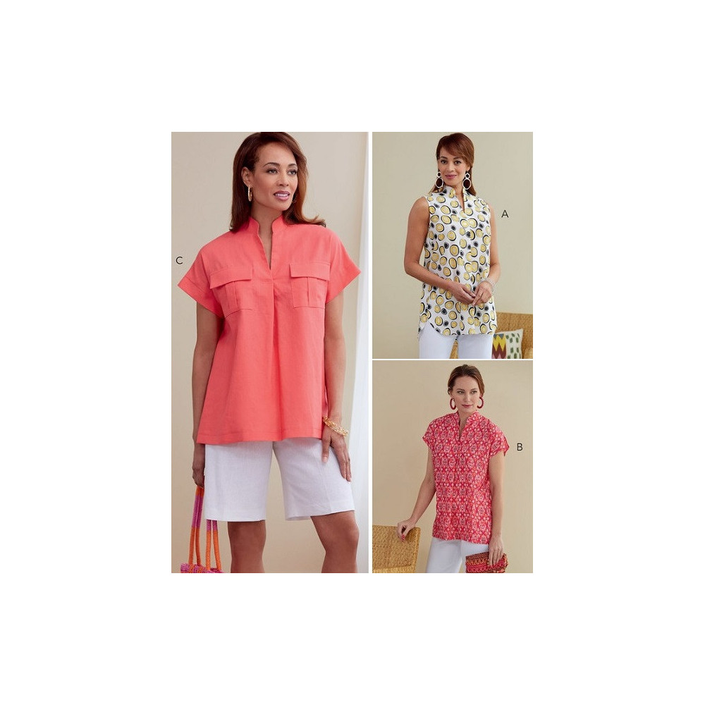 Střih Butterick na volnou košili se stojáčkem a skladem vpředu (3 varianty)