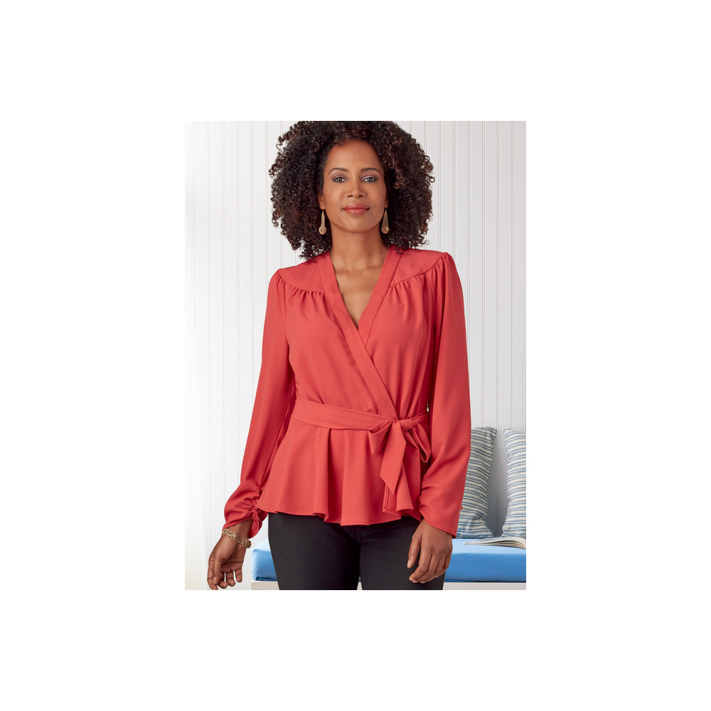 Střih Butterick na halenku s V-výstřihem a se zavazováním v pase vpředu