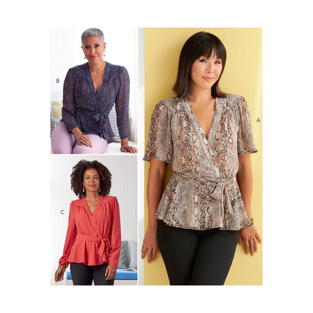 Střih Butterick na zavinovací halenku peplum košili (4 varianty)